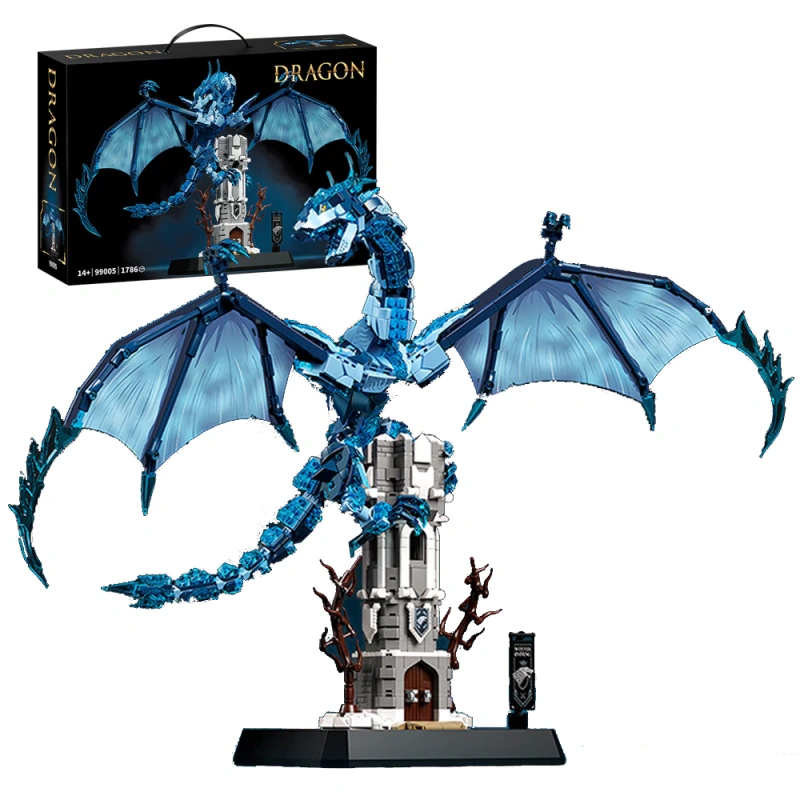Wejdź do świata fantazji i magii dzięki wyjątkowemu zestawowi klocków przedstawiającemu potężnego Niebieskiego Smoka. Ten imponujący model składa się z 1786 elementów, które pozwolą Ci zbudować majestatycznego smoka z rozpostartymi skrzydłami, unoszącego się nad wieżą obronną.